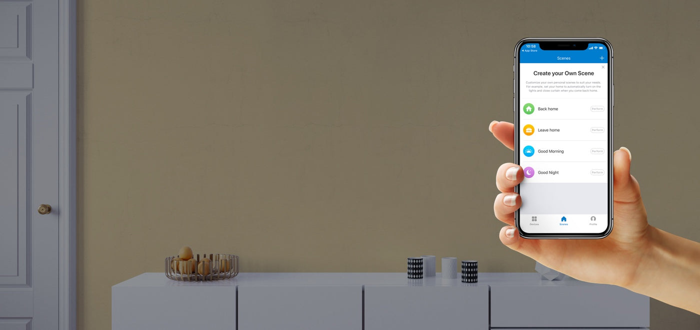 You can connect multiple products in a scene to control them with a single command. For example, call it a day with “Good Night” scene that turns off lights and all connected devices.