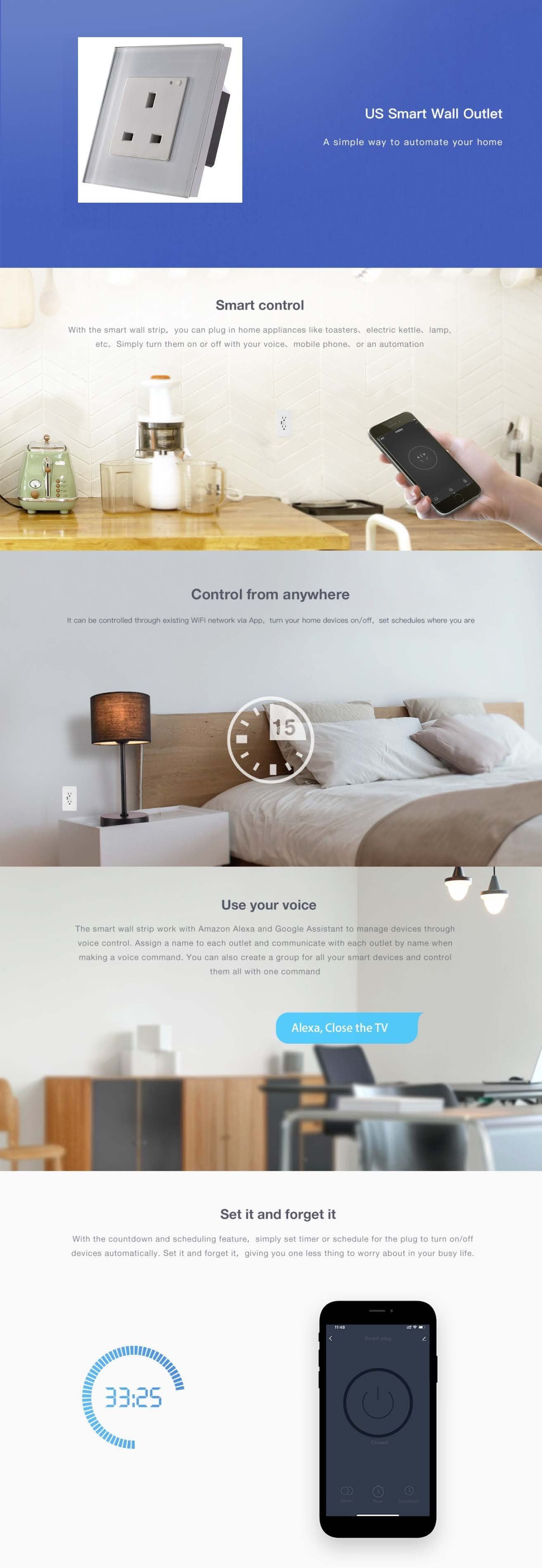 MODERN & ARTISTIC DESIGN: Stunning and Elegant look, added to your Beautiful Home. Our Wifi home socket suits greatly with many modern decor styles.